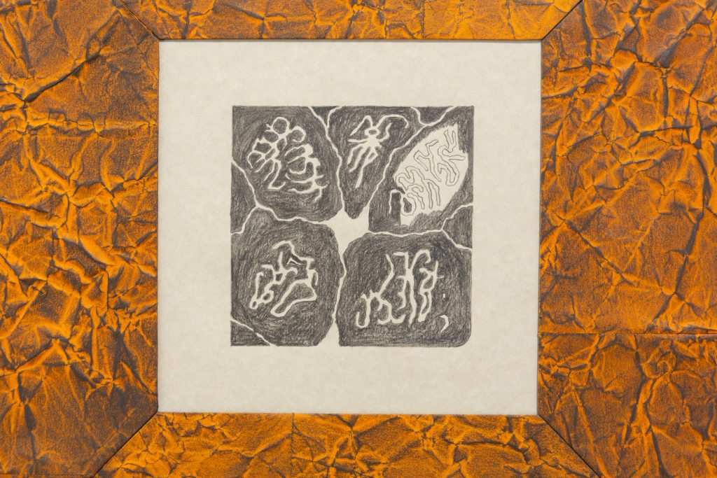 Frotāža & grafīta zīmējums, 28.5 x 28.5 x 5 cm
