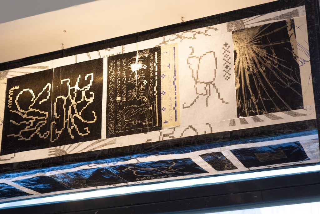 Fotāža & kolāža, grafīts, 215 x 167 cm